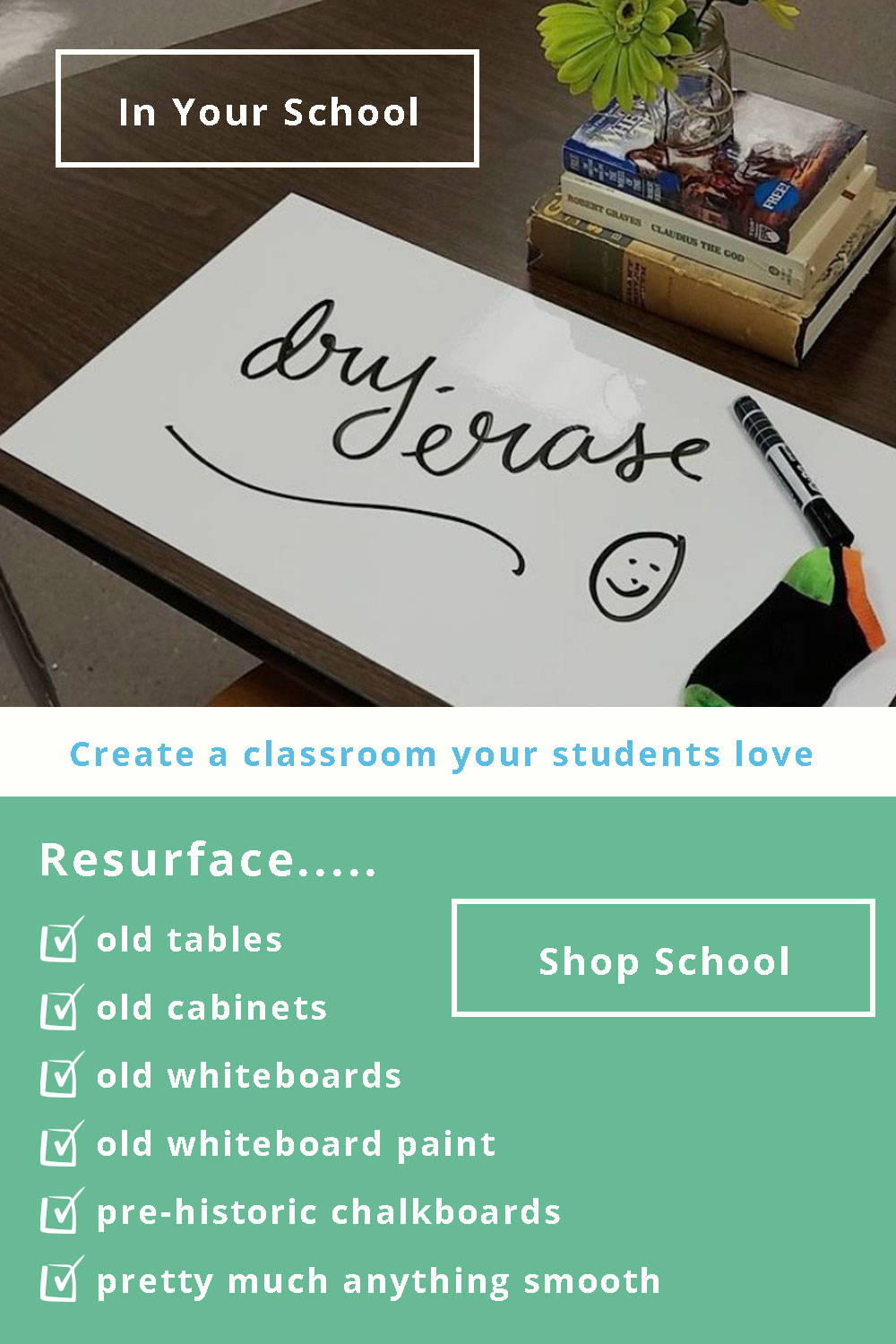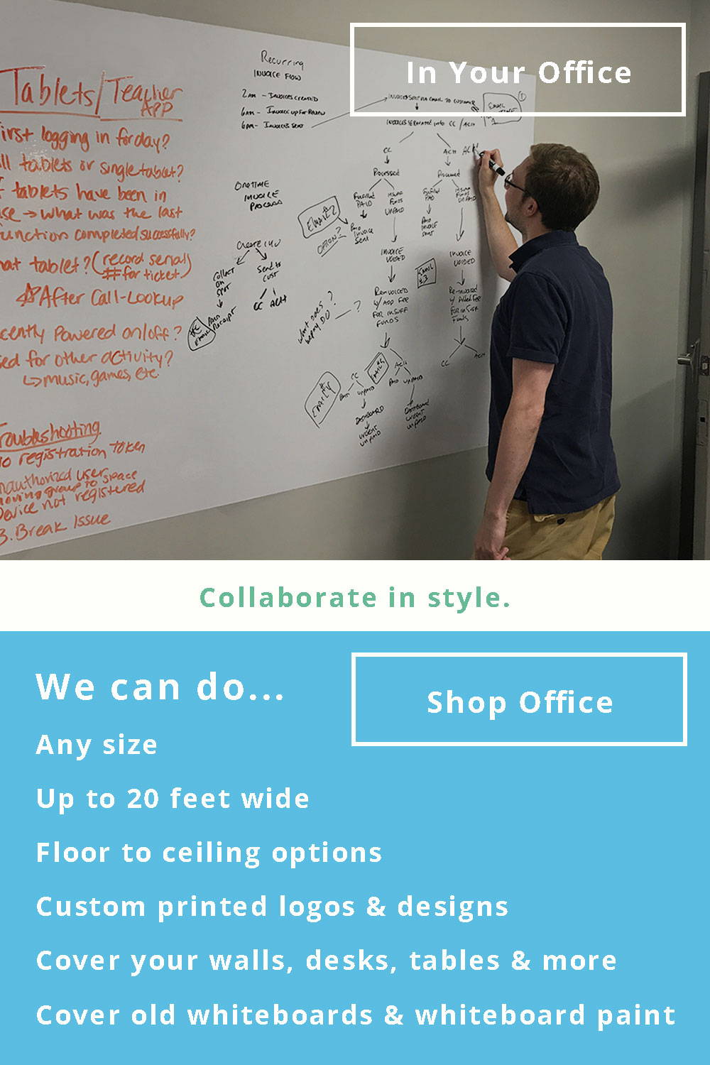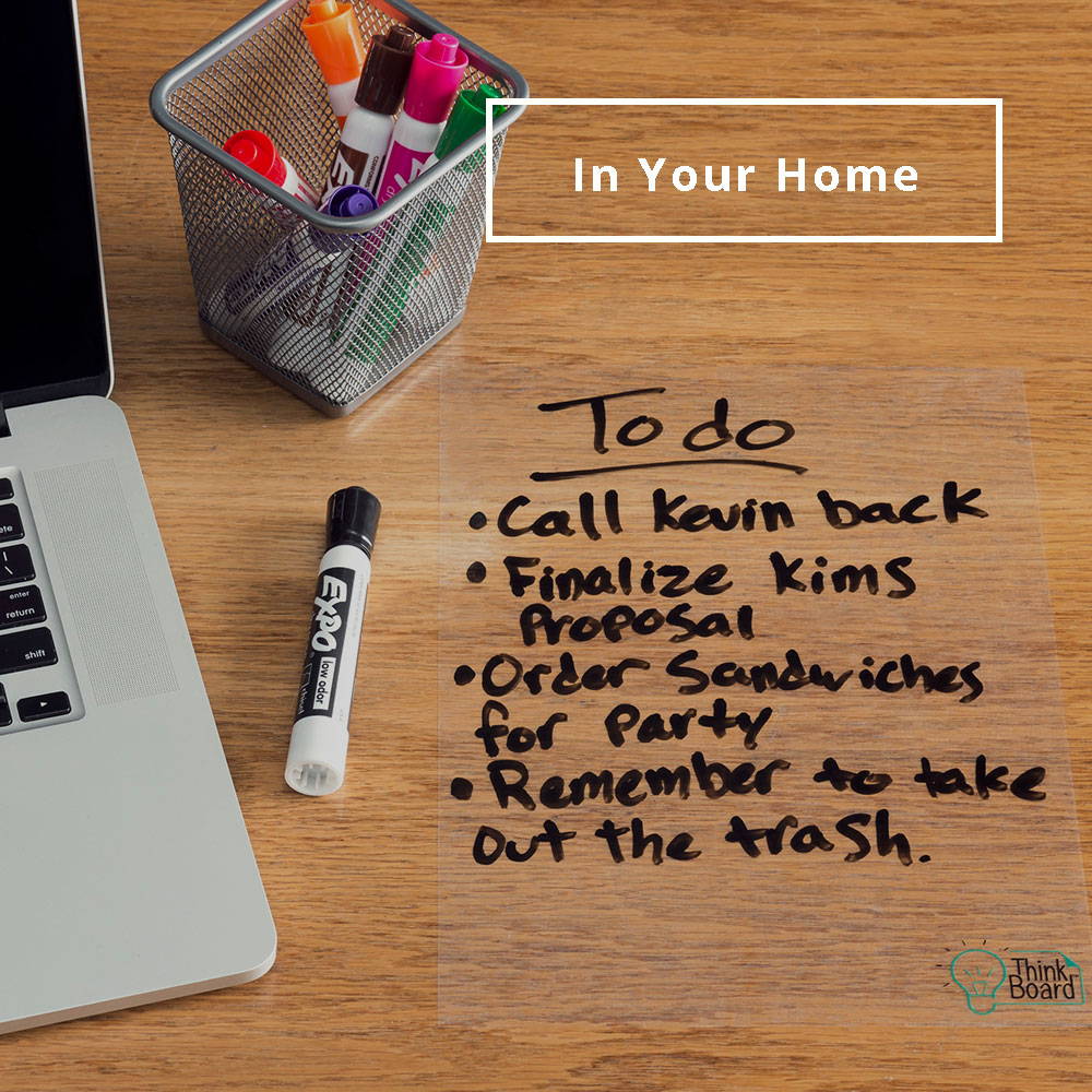 Think Board is a high quality dry erase film that turns any smooth surface into a premium whiteboard